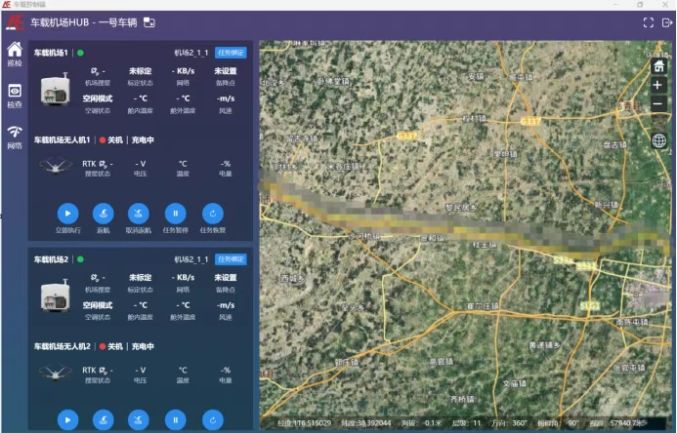 基于巡护使用的油动皮卡车部署车载机场系统,该系统内置大容量电池,支持充电桩快充,满足长时间、多架次巡检任务,构建“车-机-网”协同巡护体系。该方案满足常规巡检与应急响应双重需求,为管道巡检注入更强的灵活性和机动性。