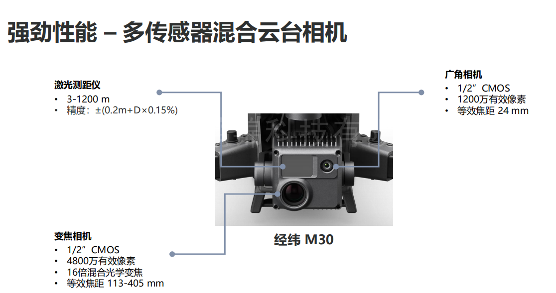 飞行平台:一体化飞行平台,M30T 及 M30 两个版本,负载不可拆卸