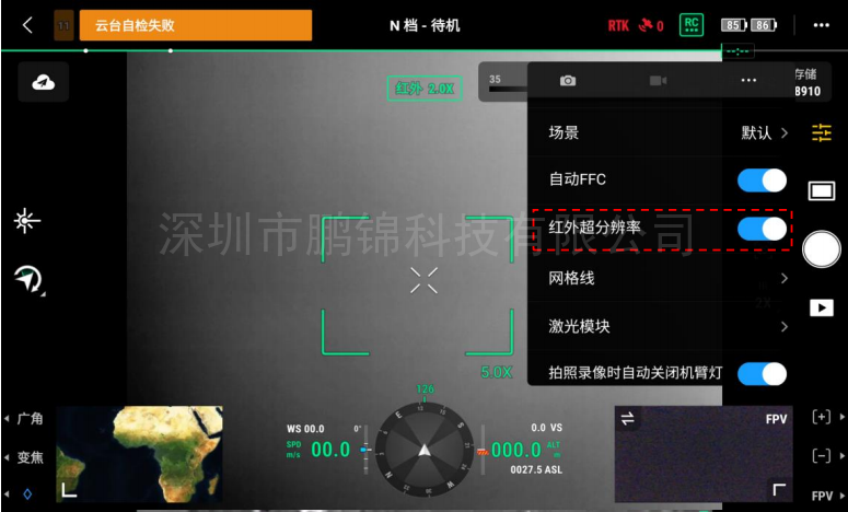 • 相机设置中可开关,默认打开,开启后红 外图片分辨率为1280*1024