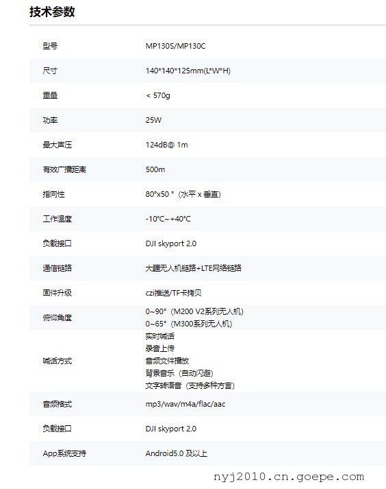 无人机负载,喊话器,语音广播系统,, 大疆无人机山林搜救搭载应用数字语音广播系统MP130S成至 MP130S 是无人机ZHUAN用的长距离扬声装置(LRAD),具备超高声压,有效扬声距离达 500米。