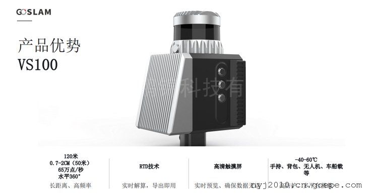 详细信息| 询价留言品牌:GoSLAM 型号:VS100 类型:激光三维扫描仪 扫描方式:手持、背包、无人机、车船载安装 扫描速度:65万点/秒 S 扫描幅面:360°✖45° 重量:0.9KG(手持端) 用途:建筑工程信息采集,堆体计量,农林 扫描幅面:360°✖45° -