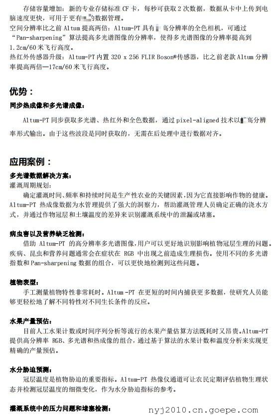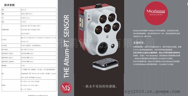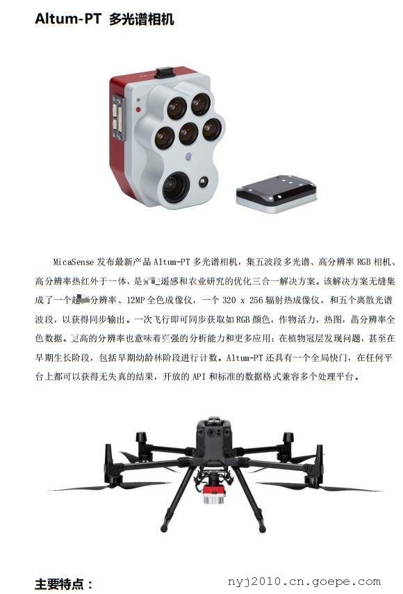 详细信息| 询价留言品牌:Micasense 型号:Altum-PT 光学变焦倍数:其他 液晶屏尺寸:其他 最大分辨率:其他 用途:农业林业应用,三合一高分辨率,农 捕获速率::每秒捕获2次原始DNG 光谱带::蓝色、绿色、红色、红色边缘、近 用途:农业林业应用,三合一高分辨率,农 -