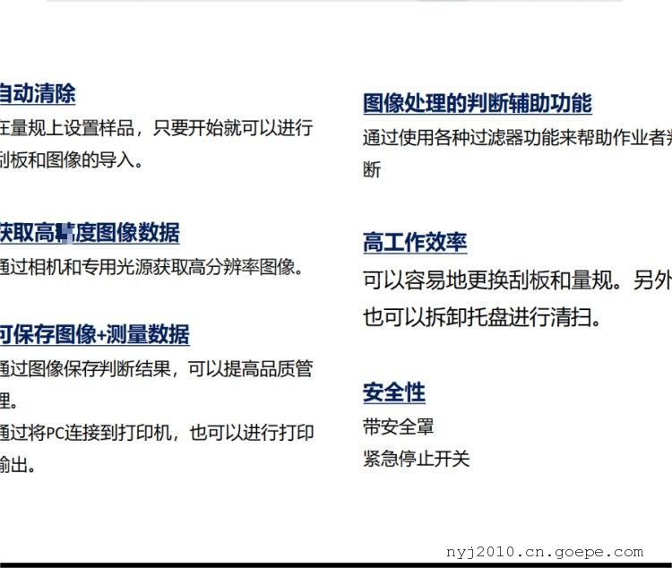 AGS-100研磨量规扫描仪,是通过采用自动刮板机构和光源,使高分辨率图像的取入成为可能的装置。可高分辨率显示刮板后量规表面的凹凸。可以用jpeg保存根据该图像判断的测定值。通过采用简单的机构,可以获得稳定的再现性。