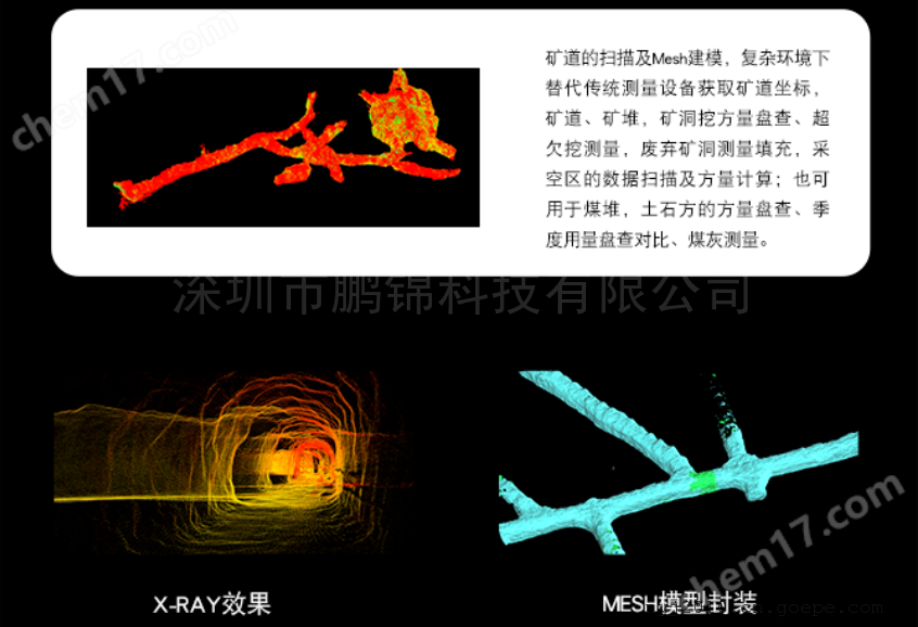 多组数据的拼接,矿洞、堆体等体积的计算支持基于矿道点云的Mesh模型封装为数字化平台提供可用的三维模型数据GOSLAM煤矿井下巷道防爆手持三维激光扫描仪