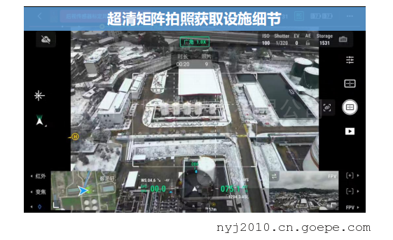 经纬M30系列支持一键全景、超清矩阵两种特殊拍照模式。对于输油站、炼化厂等,借助空中视角势,可快速掌握场