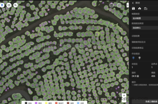 利用 M3M 仿地航测山林果园,配合大疆智图或大疆智慧农业平台重建果园高清地图,可以自动识别果树棵数、区分果树与障碍物,并且能够生成农业无人飞机三维作业航线,作业更安全。