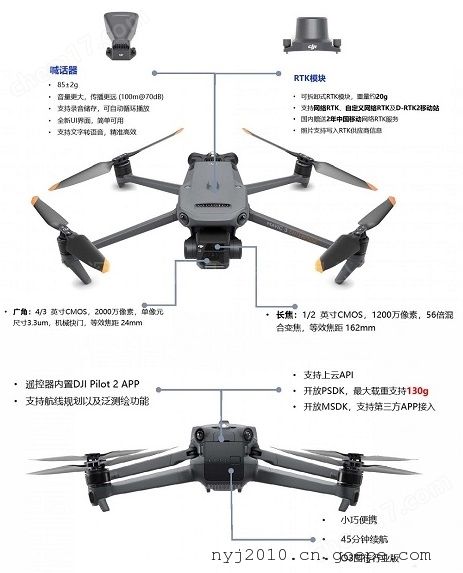 Mavic 3E 主要针对测绘和泛测绘领域,4/3英寸广角相机,配备机械快门,搭配RTK模块可实现厘米级测绘作业;大疆御Mavic3E套装电池套装RTK经销商价格请咨询客服