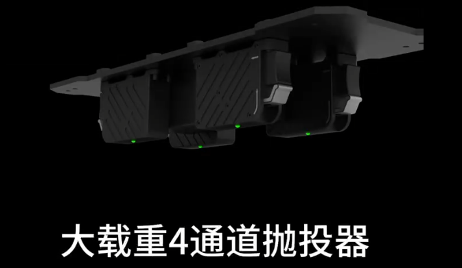 设备一共包含四个投掷器,单个投掷器依次投掷。单个投掷器可承载 30kg 的投掷 物品,无人机投掷系统可承载 120kg 的投掷物品。适用于灭火弹投掷、应急物资投掷、 电力架线、突发应急救援等任务。