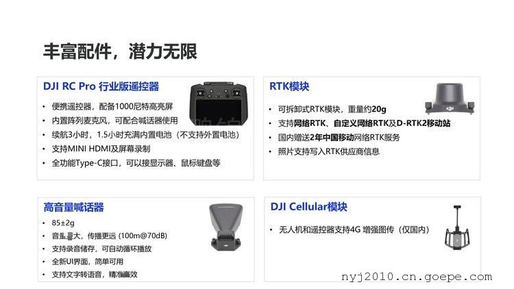 详细信息| 询价留言品牌:大疆 型号:御M3E 加工定制:否 外形尺寸:221 * 96.3 * 90.3 mm mm 重量:915 克(裸机) ㎏ 加工定制:否 -