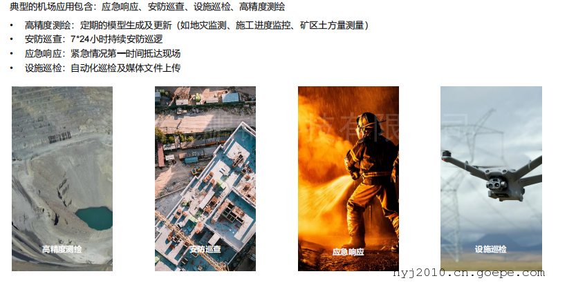 Ÿ 设施巡检:机场集成了 RTK 模块,可提供厘米级定位,保证自动作业时拍摄物体的JING度(不