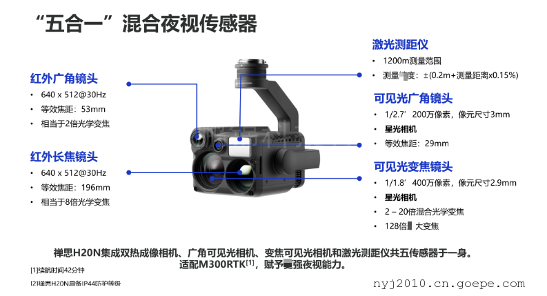 详细信息| 询价留言品牌:大疆DJI 型号:禅思 H20N 加工定制:否 外形尺寸:178x135x161 mm mm 重量:878±5 g ㎏ 用途:夜视传感器,智能追踪,.夜间巡逻. -