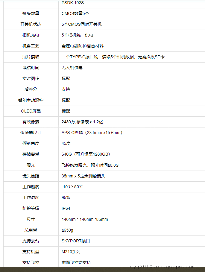 详细信息| 询价留言品牌:赛尔 型号:102S 加工定制:否 外形尺寸:140*140*85 mm 重量:650G ㎏ 用途:实时图传,减震增稳平台,便捷的 赛尔102S精度地籍测绘倾斜摄影五镜头相机