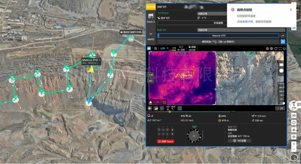 大疆机场 3 搭配司空 2,可显著提升无人值守的智能化水平和作业效率。在安防、巡检等场景中,设置全新智能航线后,无人机可自动检测车、船等目标及红外温度异常点,并自主进行拍摄等动作,实现含飞行、检测、提示、记录在内的一整套全自动化作业流。全新智能变化检测功能,可高效地对区域变化进行周期性对比分析。同时,虚拟座舱远程操控界面中,视角跟随体验大幅提升,无需繁琐调整无人机姿态和云台朝向,可快速、精准定位画面中心,真正实现“指哪看哪”。作业人员在远程操控无人机飞行时,可借助 Matrice 4D 系列无人机强大的自动变焦能力快速锁定并跟随车、船等目标,高效实现跟拍记录。